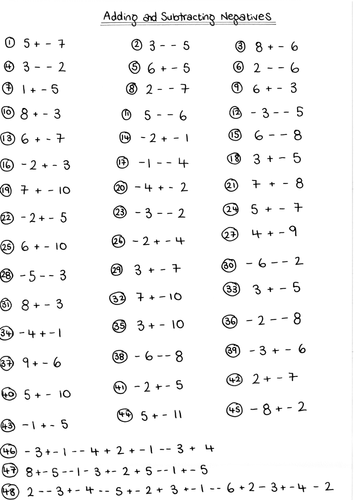 Ks3 Adding And Subtracting Negative Numbers Teaching Resources